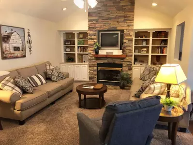 Other amenities include a fully equipped kitchen, brand new walk in shower, wireless access, living room with gas fireplace, carbon monoxide detector, fire extinguisher, hair dryers in the vanities of both bathrooms, 2 inch wooden blinds, vacuum, iron/ironing board, a full size washer/dryer and wireless internet.
